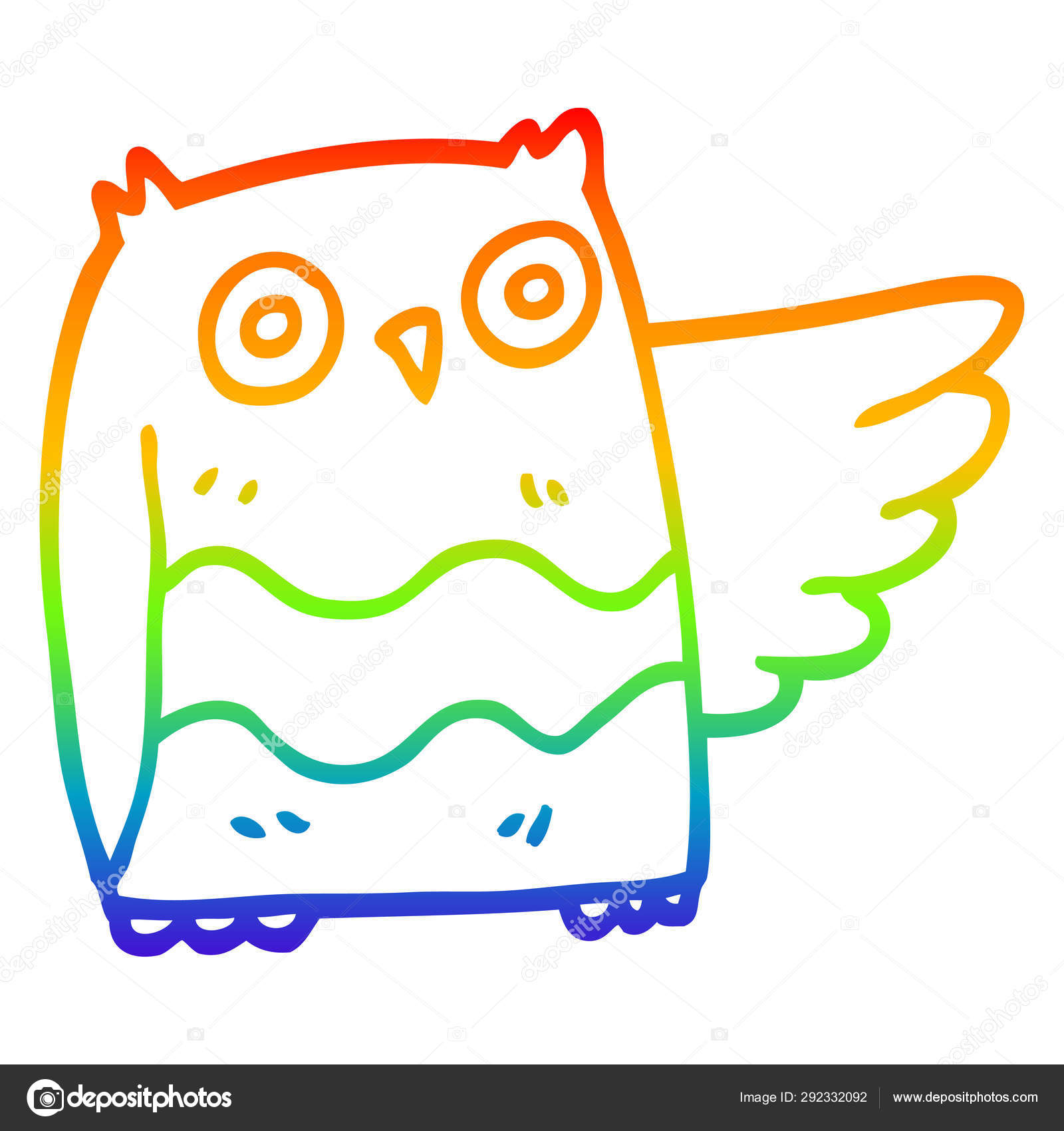 Rainbow Gradient Line Drawing Cartoon Cute Owl Stock Vector